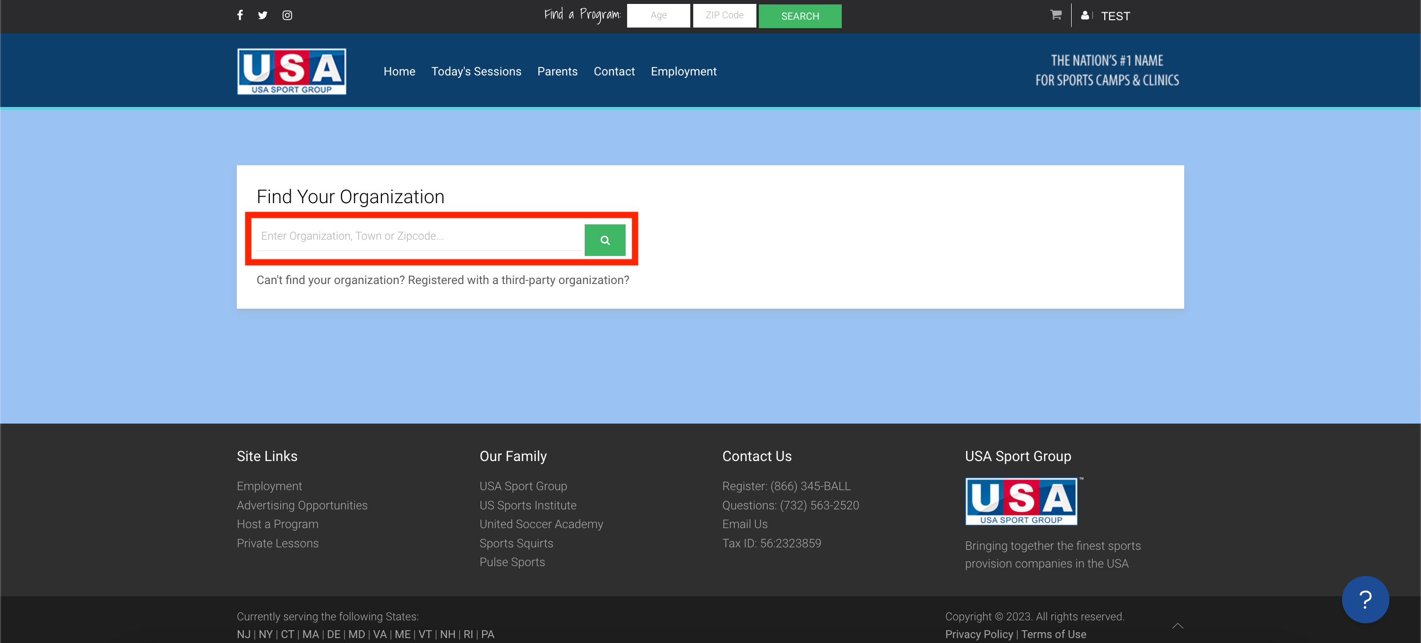 - Search the organization/recreation department you signed up for on our third-party-specific webpage. Feel free to look up the town or city if you cannot recall the organization's name.