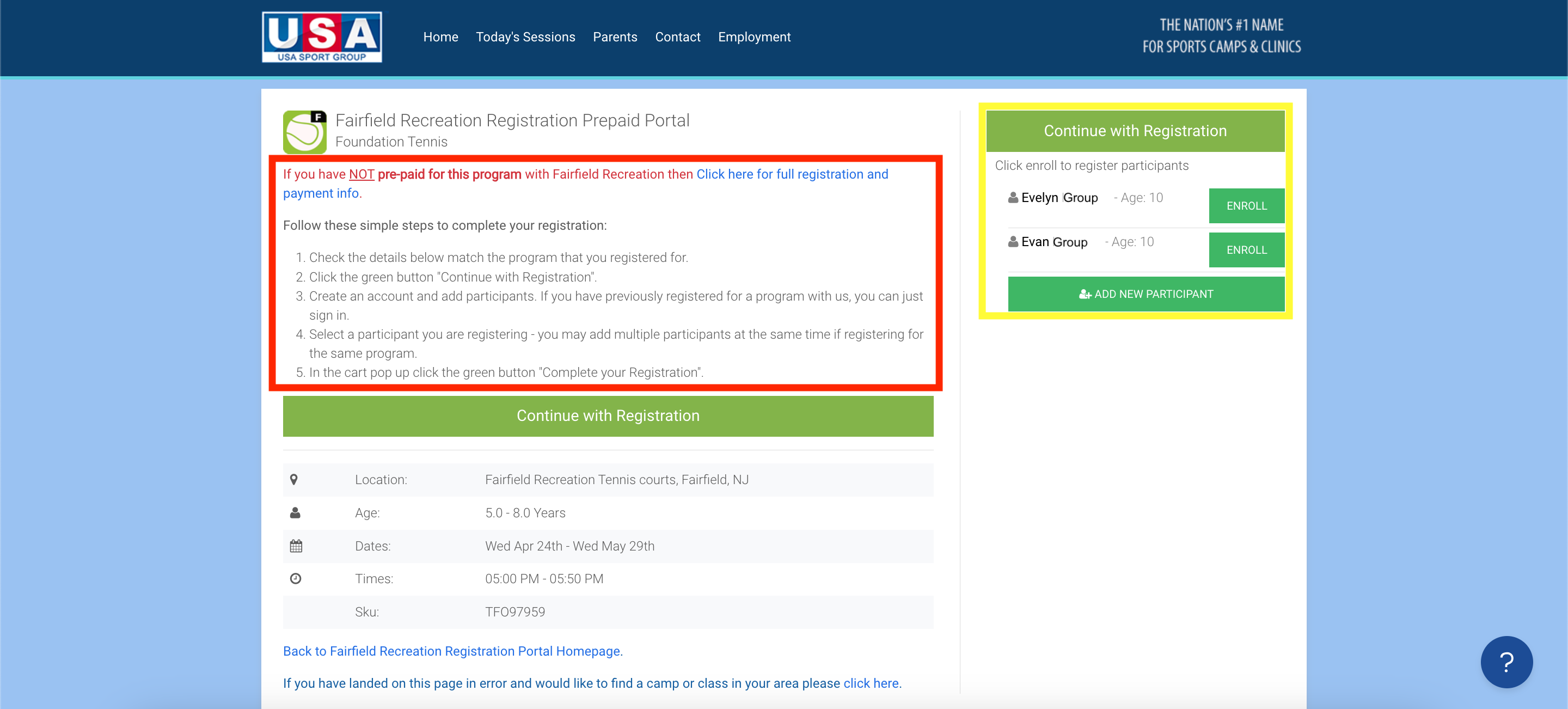 - After selecting, confirm that you have pre-paid and registered for the program with the specific organization BEFORE continuing with the additional information. Once confirmed, select "Continue with Registration" and choose the participants who are set to be in the program.