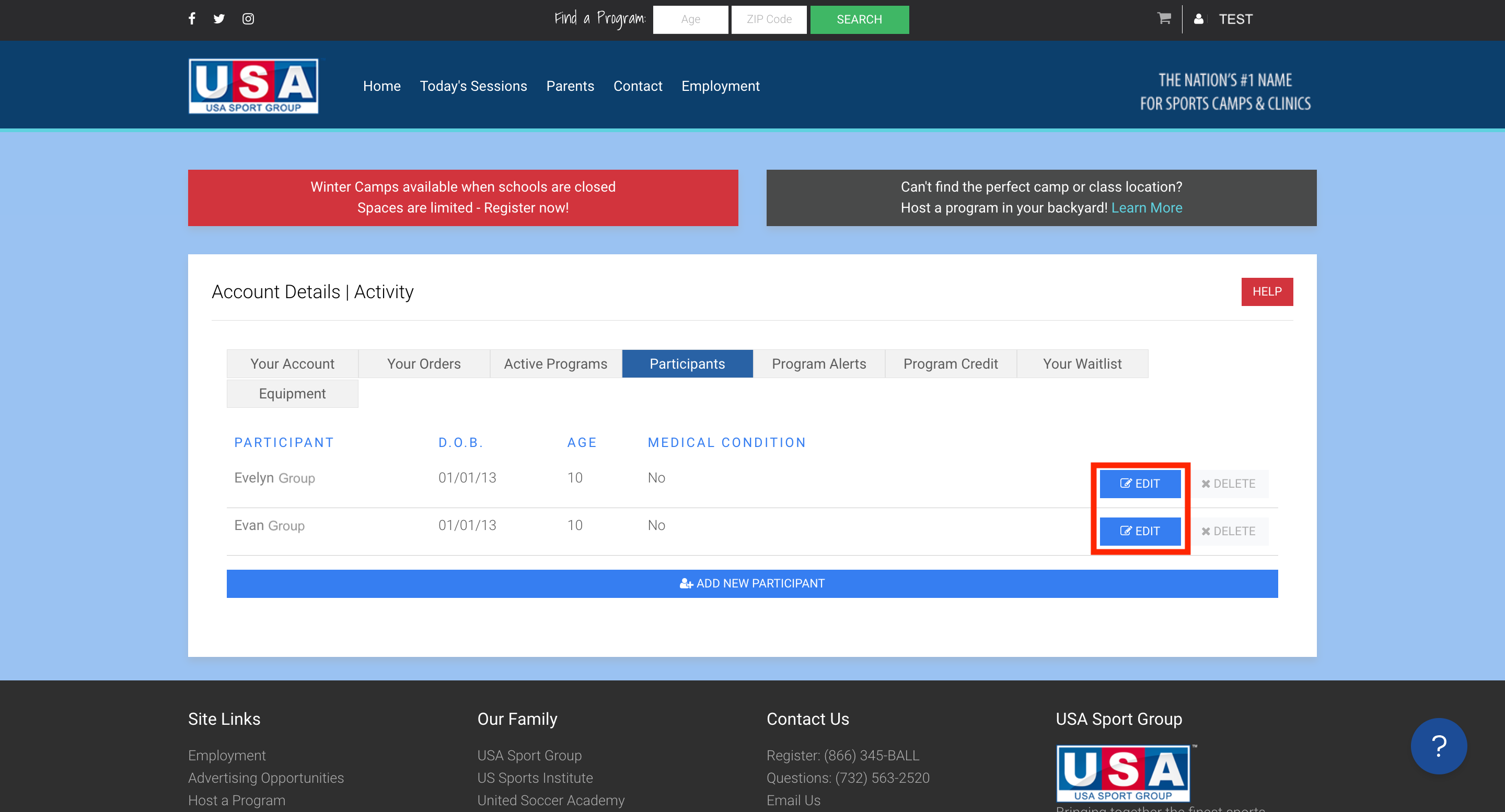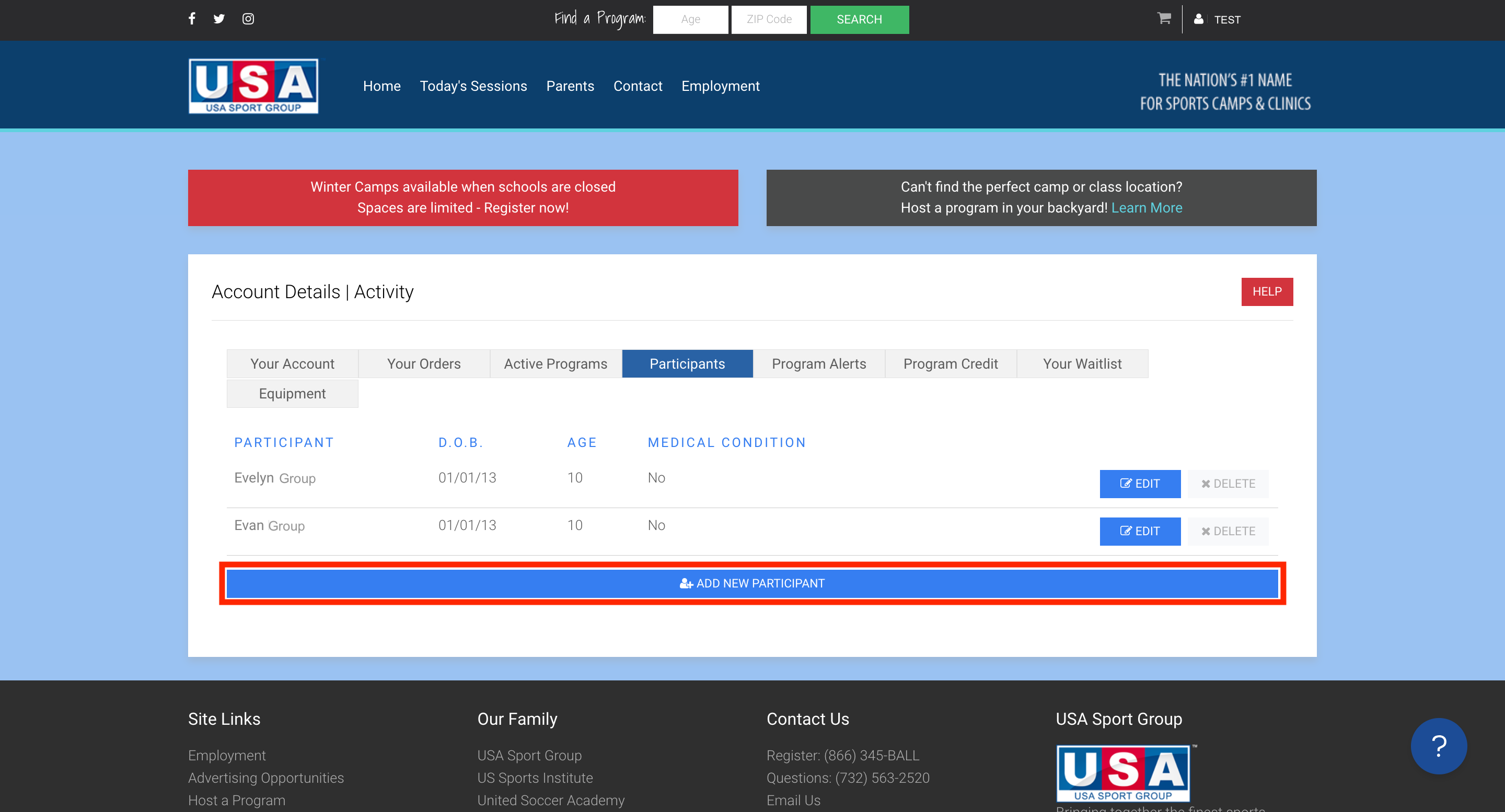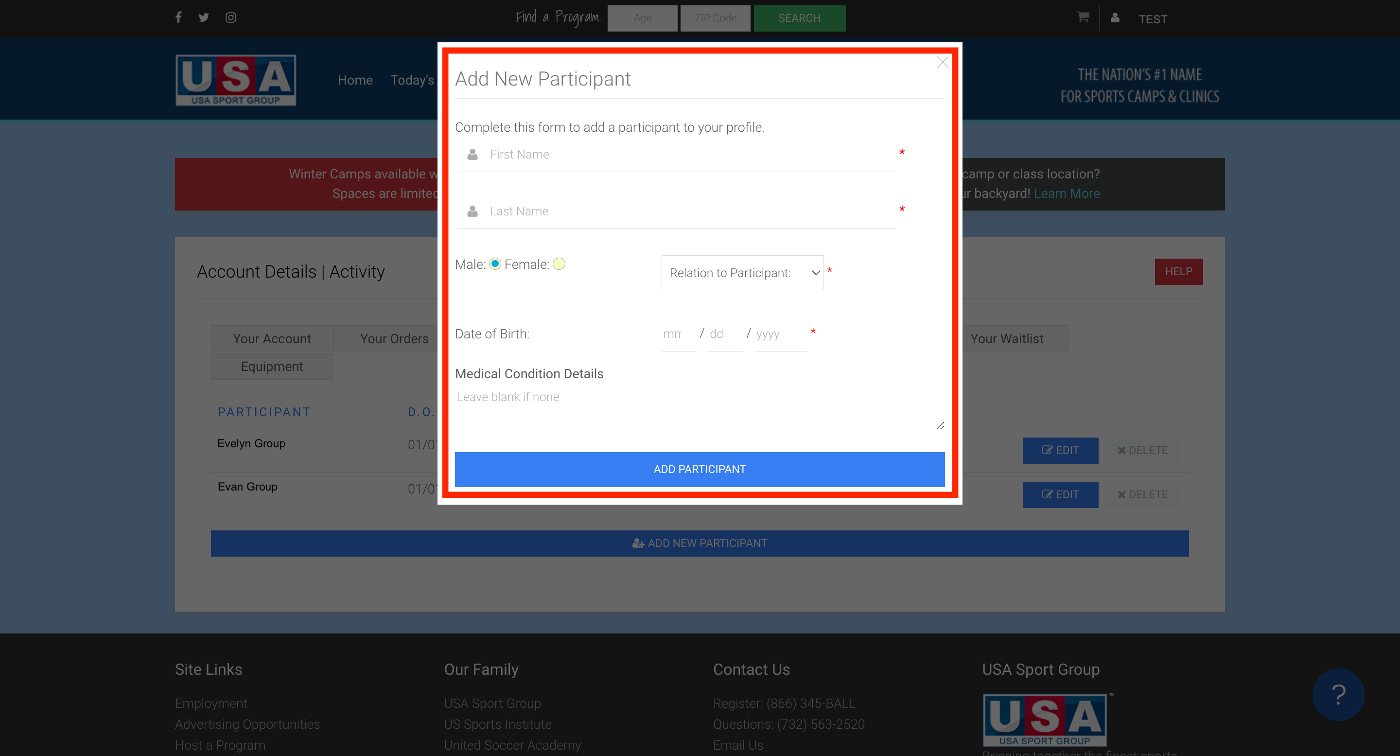 After making your account with USA Sport Group, you may need to add participants, change your password, or simply update contact information. We have compiled some common questions regarding this topic below.